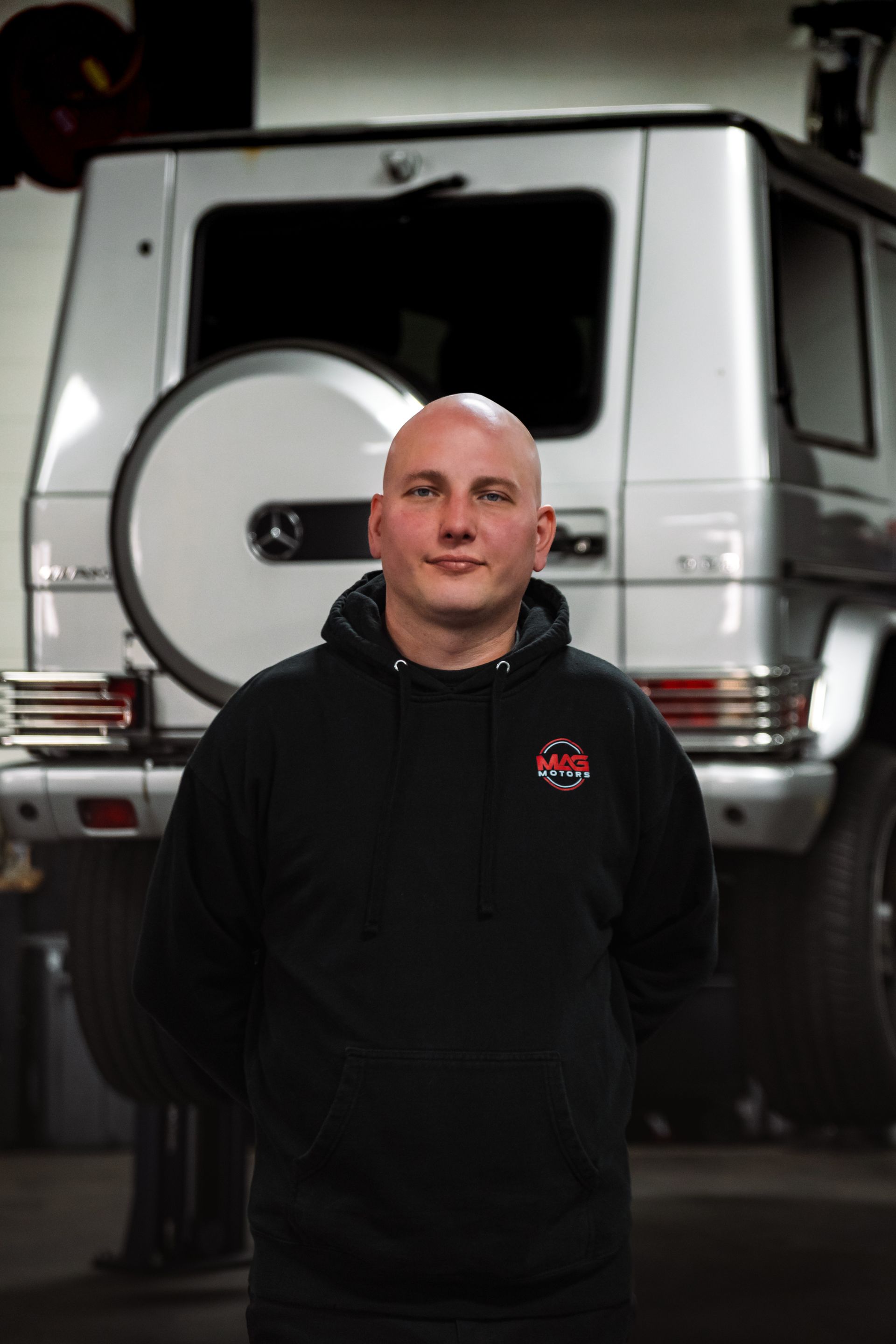 Woody immediately became part of the family when he started working with Mike at the Mercedes Benz dealership as a teenager. His natural mechanical aptitude made learning one of the world's most complicated car lines easy. Woody has since spent his days leading up to his arrival at MAG, at the dealership, learning from the manufacturer. He was lucky enough to train at the plant in Stuttgart, Germany. He brings his Master Certification along with his AMG Expert Certification to MAG Motors and is a great leader for our technicians.